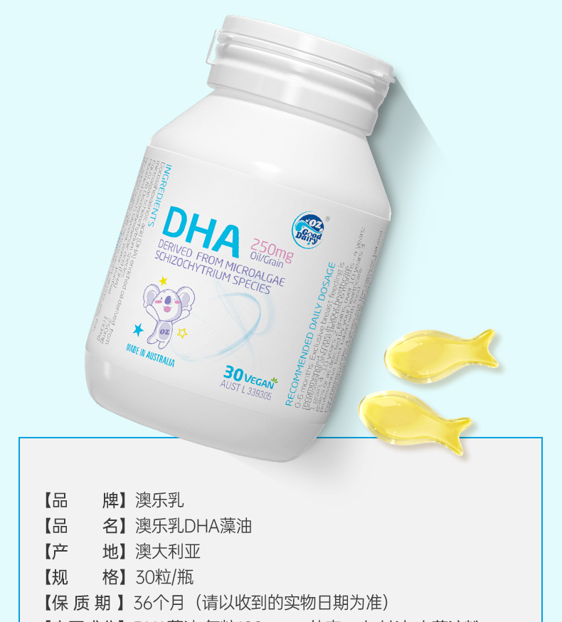 澳乐乳儿童藻油DHA(30粒)