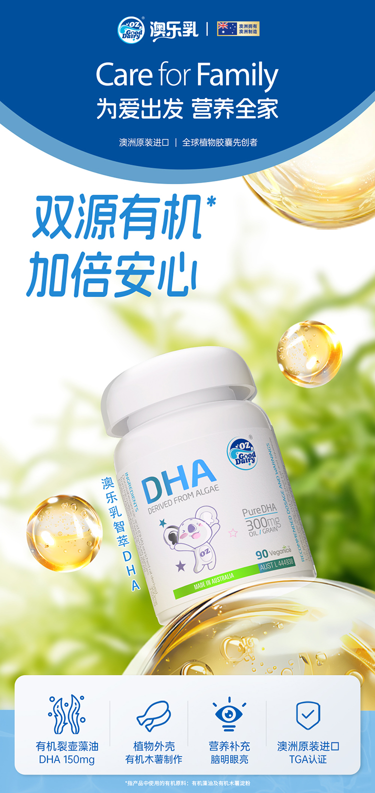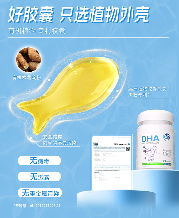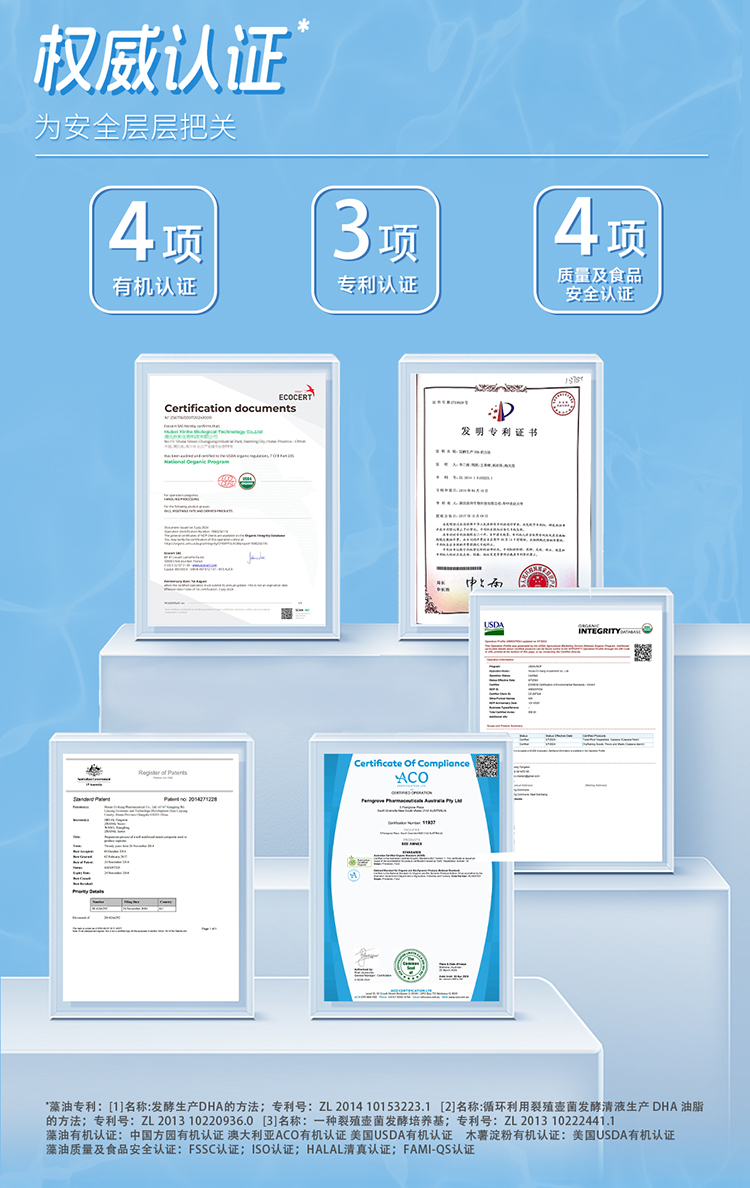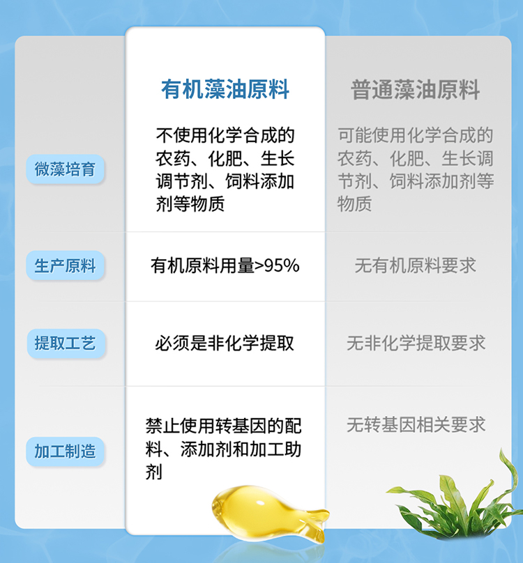 (1)中美澳三国有机认证裂壶藻油,每粒含150mgDHA