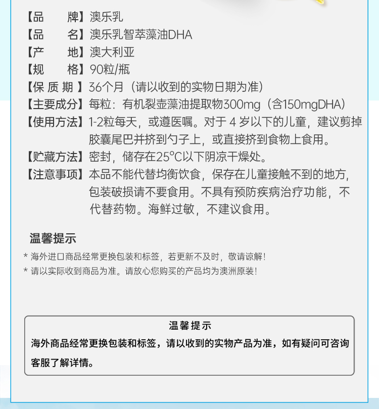 澳乐乳智萃DHA(90粒)